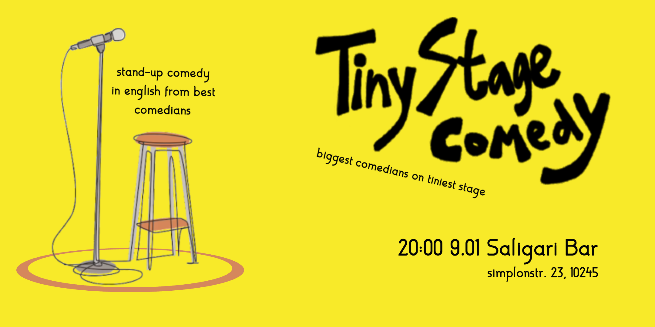 Hidden comedy gem: Show where biggest comedians perform on a tiniest stage in the heart of Friedrichshain Berlin Welcome to Tiny Stage Comedy, an intimate gathering where the laughs are big and the stage is cozy! Biggest comedians in europe will perform on tiniest stage in cozy bar in Friedrischain. You will hear their best…